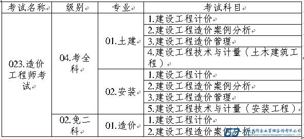 四、造價(jià)工程師執(zhí)業(yè)資格考試名稱、級別、專業(yè)、科目代碼表